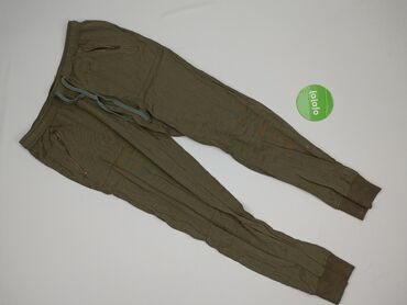 Zielone spodnie damskie typu jogger - Rozmiar: L (z metki) - Skład: 95% poliester, 5% spandex – tkanina elastyczna, gładka, miękka w dotyku - Krój: joggery z gumką w pasie i sznurkiem do regulacji...