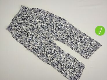 Damskie spodnie w kwiaty – rozmiar M - Kolor: granatowy z nadrukiem drobnych kwiatów w odcieniach różu, zieleni i bieli - Materiał: 100% wiskoza (lekka, przewiewna tkanina) - Fason: luźne, zwężane...