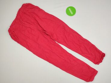 Spodnie damskie z lekkiej tkaniny, wzór w czerwone róże, liście oraz elementy zwierzęce (panterka) na jasnym tle. - Krój: zwężane nogawki, lekko bufiaste przy kostce - Talia: elastyczna gumka - Ki...