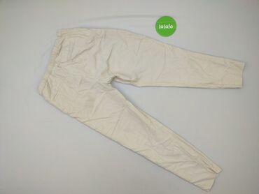 Lekka, przewiewna para spodni idealna do casualowych stylizacji i do pracy. Neutralny kolor łatwo łączy się z koszulami, T-shirtami i swetrami. Na jednej z nogawek widoczne niewielkie przybrudzenie (pokazane na zdjęciu).