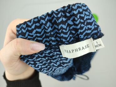 Spodnie damskie House Collection, rozm. S - Fason: luźne, zwężane nogawki; papierowa talia (paperbag) z falbanką - Wzór: granat w drobne pionowe prążki - Pas: elastyczna guma + materiałowy pasek d...