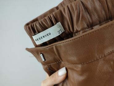 Spodnie damskie Reserved - Model: materiałowe, z nogawką zwężaną ku dołowi - Kolor: ciemny brąz - Rozmiar z metki: EU 40 (UK 12) - Fason: wysoki stan, elastyczna guma z tyłu pasa dla wygody; przód...
