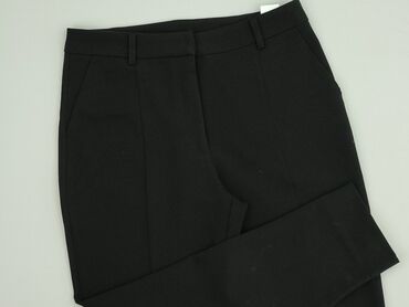 Damskie spodnie materiałowe – czarne, zwężane - Krój: proste, zwężane nogawki, kant z przodu, gładki pas bez szlufek - Zapięcie: brak widocznego (model typu pull-on/na gumie w pasie – wygodne dopa...