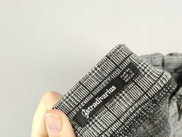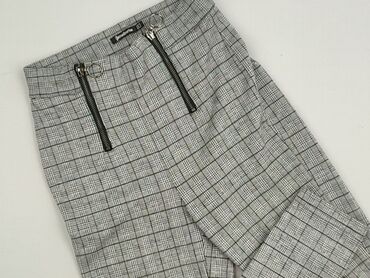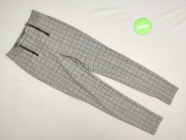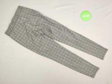 Spodnie damskie marki Stradivarius w szarą kratę, rozmiar M, wykonane z tkaniny z widoczną fakturą, co nadaje im ciekawy wygląd. Posiadają wygodny elastyczny pas i zakładki, które dodają im stylu. ...