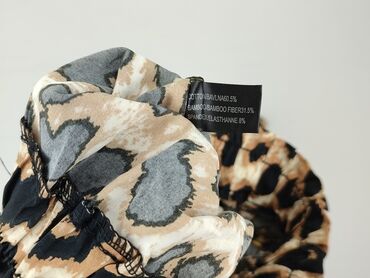 Spodnie damskie w panterkę - Krój: luźne, zwężane ku dołowi, z gumką przy kostkach (ściągacze). - Pas: szeroki, elastyczny ściągacz w kolorze karmelowym z dekoracyjnym panelem i sznurowaniem z prz...