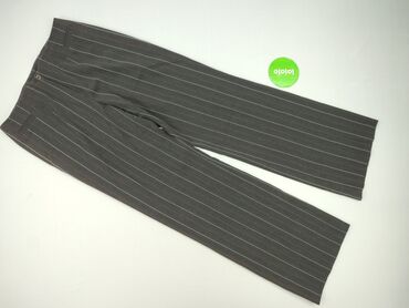 Damskie spodnie materiałowe w prążek - Krój: klasyczny, proste nogawki - Talia: standardowa, szlufki na pasek - Zapięcie: guzik i zamek - Kolor: ciemnoszary melanż z delikatnymi, pionowymi prążkam...