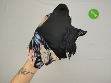 Spodnie damskie typu harem/bojówki z szeroką gumą w pasie i ściągaczami przy kostkach. Czarny materiał z białym, gęstym kwiatowym wzorem. Lekka, przewiewna tkanina: 65% bawełna, 35% poliester (metk...