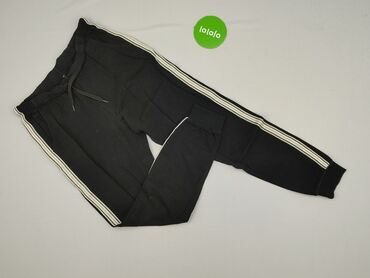 Czarne spodnie dresowe/joggers - Fason: zwężane nogawki typu jogger - Talia: elastyczna guma + sznurek do regulacji, metalowe końcówki - Nogawki: ściągacze przy kostkach - Kieszenie: dwie boczne -...
