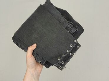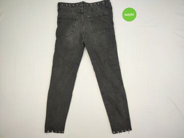 Spodnie jeansowe marki Denim Reserved w kolorze ciemnoszarym, rozmiar 38. Model z ozdobnymi metalowymi kółkami w pasie i na nogawkach. Używane, ale w idealnym stanie.
