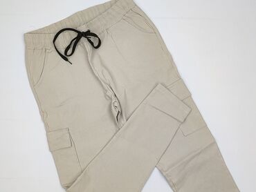 Beżowe spodnie dresowe typu jogger - Krój: joggery z mankietami ściągaczowymi na dole nogawek - Talia: elastyczna guma ze sznurkiem do regulacji - Kieszenie: dwie boczne wsuwane + boczne kieszenie...