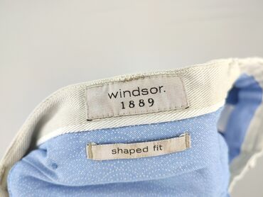 Męskie spodnie chino w kolorze beżowym. - Krój: klasyczny, proste nogawki z zaprasowanym kantem - Talia: elastyczna guma po bokach z szlufkami na pasek, zapięcie na zamek i haftkę - Kieszenie: dwi...Spodnie męskie chino marki Windsor. 1889 w jasnym, beżowym odcieniu. Model charakteryzuje się krojem shaped fit, co zapewnia dopasowanie do sylwetki. Wykonane są z mieszanki bawełny z dodatkiem elastanu, co gwarantuje komfort noszenia i lekko rozciągliwość. Posiadają klasyczny pas z zapięciem na guzik i zamek błyskawiczny, a także szlufki umożliwiające noszenie paska. Idealne do codziennych stylizacji, zarówno tych bardziej formalnych, jak i casualowych.