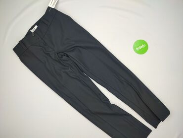 - Krój: proste, z wąską nogawką; szlufki na pasek, zapięcie na guzik i suwak