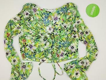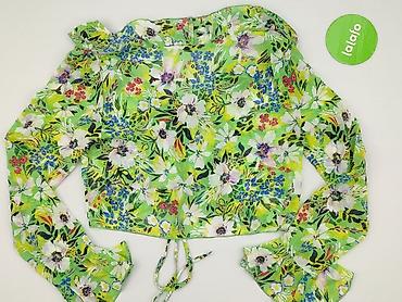 Bluzka damska Stradivarius, rozmiar EU L / USA L / MEX 30. - Krój kopertowy wiązany w pasie (pasek/sznurek do przewiązania). - Długie rękawy. - Ciemne tło z wyrazistym, tropikalnym nadrukiem ...