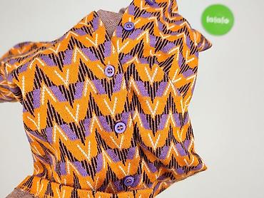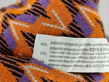 - Wzór i kolor: geometryczny, zig-zag/chevron w odcieniach pomarańczu, fioletu, czerni i bieli – wyrazisty, retro vibe.