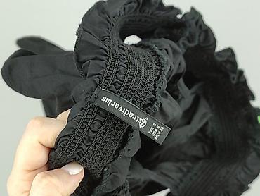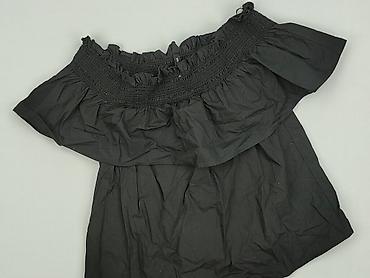 Czarna bluzka damska Stradivarius - Krój luźny, z obniżoną linią ramion i krótkim rękawem - Okrągły dekolt - Tył zapinany na metalowy suwak z ozdobną taśmą w paski i kółkiem przy suwaku - Delikatn...