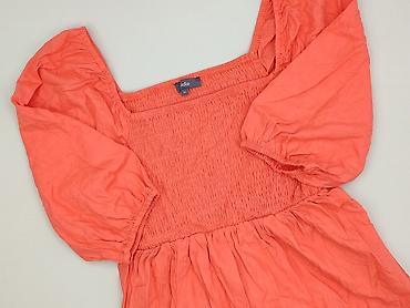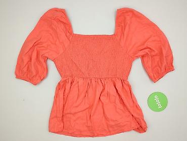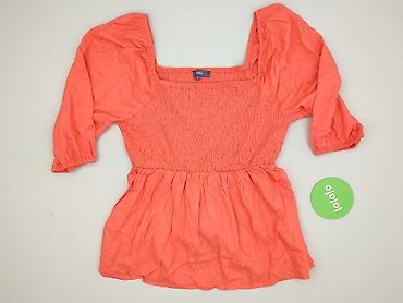 Bluzka damska marki Studio w kolorze pomarańczowym. Wykonana z mieszanki wiskozy i lnu, z kwadratowym dekoltem i rękawami 3/4. Fason z bufkami i baskinką, idealny na co dzień. Stan idealny.