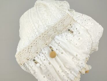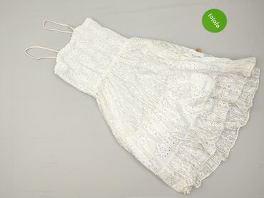 Biała sukienka boho na ramiączkach „Made in Italy” - Zwiewny, plisowany krój z miękkiej, lekkiej tkaniny. - Dekolt i ramiona zdobione ażurową koronką z kwiatowym motywem oraz perełkami. - Asymetry...