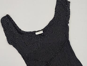 Sukienka damska, czarna, rozmiar 38. - Fason: dopasowana, długość mini/za udo - Góra: półtransparentna siateczka w drobne kropki, dekolt w serek, krótkie bufiaste rękawy - Wiązanie z tyłu przy kark...
