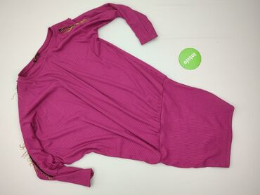 Sukienka/tunika damska w kolorze fuksji (intensywny róż). - Krój luźny, rozszerzany ku dołowi, z miękkimi marszczeniami po bokach. - Dekolt okrągły. - Rękaw 3/4. - Materiał: 95% wiskoza, 5%...