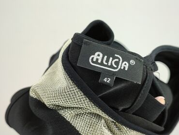 Elegancka propozycja na wieczór lub wyjścia koktajlowe; klasyczna czerń przełamana błyszczącymi akcentami. Marka: Alica. Rozmiar z metki: 42.
