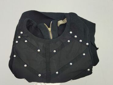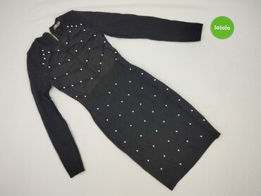 Sukienka damska, czarna, z długim rękawem i okrągłym dekoltem. Fason lekko rozkloszowany w literę A, długość mini/za kolano w zależności od wzrostu. Przód zdobiony aplikacją z perełek (białe i czar...