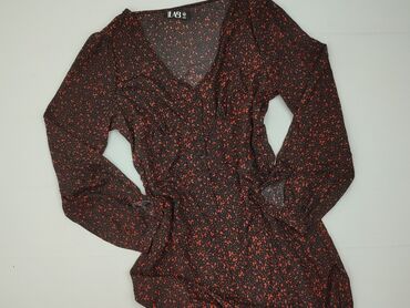 Sukienka damska Answear.LAB, rozmiar S - Długość midi/maxi - Długi rękaw - Kwiatowy wzór na czarnym tle (wielobarwne kwiaty: czerwone, żółte, niebieskie, fioletowe) - Kopertowa góra z kołnierzykie...