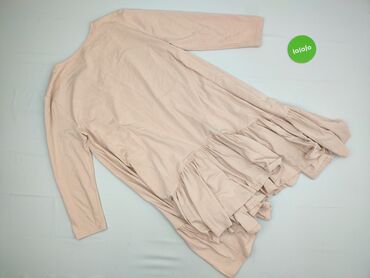 Sukienka damska, kolor pudrowy róż. Prosty, luźny krój o długości za kolano. Okrągły dekolt, rękawy 3/4 z dekoracyjnymi troczkami do ściągania/marszczenia. Materiał miękki, lekko elastyczny – gładk...Stan: