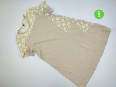 Sukienka damska, rozmiar L. - Fason: ołówkowy, długość midi (przed kolano), z krótkim rękawem - Kolorystyka: beżowo‑czarna, z wyszczuplającymi panelami po bokach - Przód: efektowna, duża aplikacja...