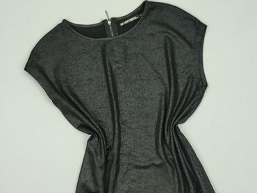 Sukienka damska bez rękawów, czarna, o prostym, dopasowanym kroju. Dekolt półokrągły zdobiony dwoma rzędami cekinów: zewnętrzny srebrny, środkowy czarny – daje elegancki, wieczorowy efekt. Materiał...Stan: