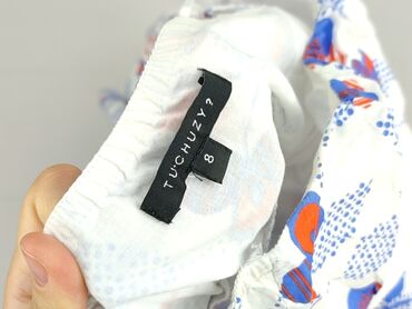 Sukienka damska Cosmoda, rozmiar S/M. - Fason: bez rękawów, taliowana gumką w pasie, długość mini/przed kolano. - Góra: dekoracyjna, ażurowa koronka w kolorze białym z motywem kwiatowym. - Dół i k...