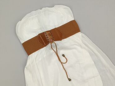 Na co dzieńBiała sukienka damska bez ramiączek z szerokim elastycznym pasem w kolorze karmelowym.