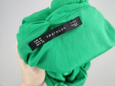 ZARA Trafaluc – sukienka damska, rozmiar S - Kolor: głęboka zieleń (butelkowa) - Fason: lekko rozkloszowany dół, odcięcie w talii - Dekolt z wiązaną szarfą/kokardą, krótka listwa guzikowa z przodu...