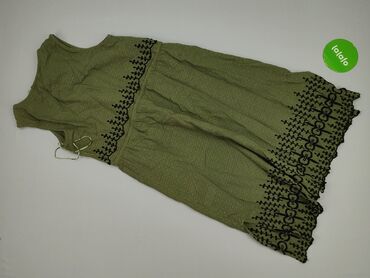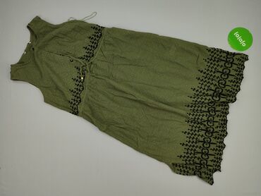 Sukienka damska midi bez rękawów z lekkiej, przewiewnej tkaniny. Wzór w koncentryczne okręgi i elipsy w odcieniach zieleni, beżu i pudrowego różu. Dekolt w kształcie litery V, zaszewki modelujące b...