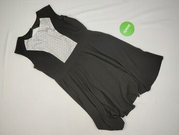 Czarna sukienka bez rękawów z koronką i plisowanym dołem - Krój: dopasowana góra, rozszerzana spódnica do kolan (lub nieco przed kolano), taliowana. - Materiał: lekka tkanina z wstawkami z czarnej...