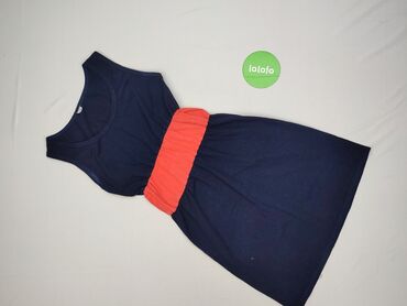 Sukienka damska bez rękawów, granatowa - Krój: prosty/tuba, długość przed kolano - Dekolt: okrągły - Talia: ściągana sznurkiem (możliwość regulacji dopasowania) - Materiał: 95% bawełna, 5% elastan...