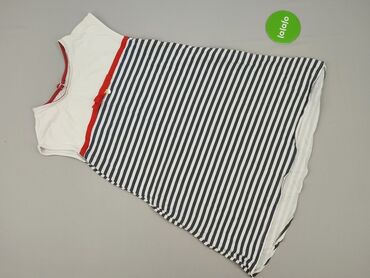 Sukienka damska bez rękawów w marynarskie pasy - Krój: prosty, do kolan, bez rękawów, okrągły dekolt - Wzór: szerokie poziome pasy granatowo-białe; wstawki w kolorze szarym (boczne panele i dół) -...