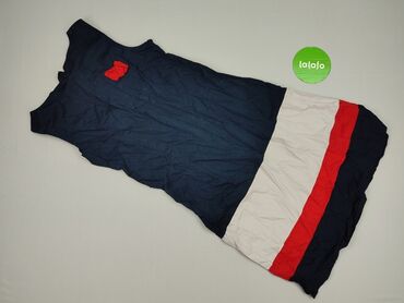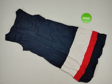 Sukienka damska bez rękawów, w stylu casual. Model z miękkiej, elastycznej dzianiny. Kolorystyka: naprzemienne szerokie pasy czerwieni oraz granatu w białe groszki. Dekolt okrągły, fason lekko rozs...