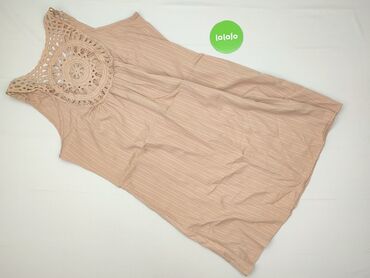 Sukienka damska bez rękawów w kolorze jasnego beżu/ecru. - Fason: lekko rozkloszowany, długość przed kolano, głęboki dekolt V z przodu. - Talia: szeroka, elastyczna gumka podkreślająca sylwetkę (m...