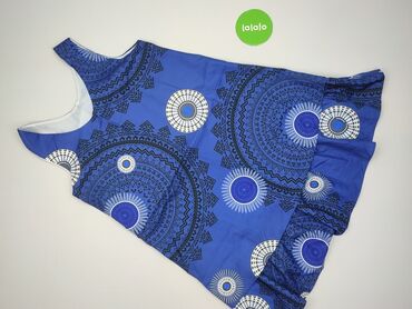 Sukienka damska bez rękawów, z niebiesko‑białym, etnicznym/ikatowym wzorem. - Krój: midi lub za kolano, delikatnie zwężana w talii, rozszerzana ku dołowi; okrągły dekolt. - Tkanina: lekka, przewi...