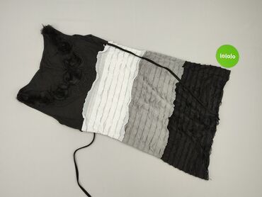 Sukienka damska bez rękawów, dwukolorowa - Góra: czarna, dopasowana, dekolt w kształcie subtelnego V, zaszewki modelujące, zamek z tyłu - Talia podkreślona ozdobnymi, połyskującymi taśmami w odcien...