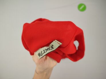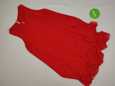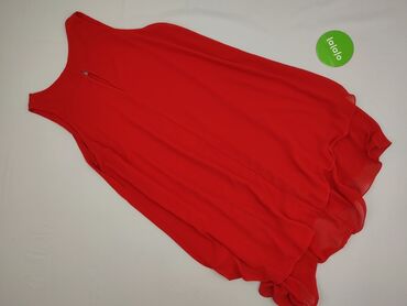 Sukienka damska bez rękawów w czerwonym kolorze z białym, nieregularnym deseniem. - Krój: rozszerzany dół, talia marszczona szeroką gumką podkreślającą sylwetkę. - Dekolt: okrągły; z tyłu małe ro...