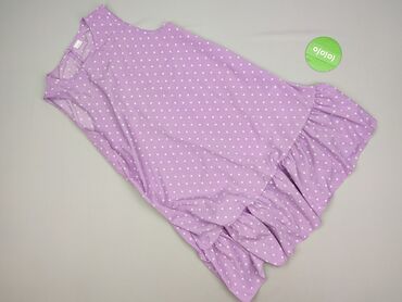 Sukienka bez rękawów, rozmiar 38. - Kolor: lawendowy/fioletowy. - Wzór: różowe kropki (pełne i w paseczki) rozrzucone na całej powierzchni. - Krój: prosta, długość midi, okrągły dekolt, lekko po...