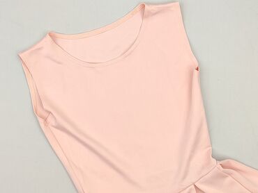 Sukienka damska bez rękawów w kolorze pudrowego różu. - Krój: dopasowana góra, rozkloszowany dół z zakładkami, talia podkreślona. - Dekolt: okrągły. - Zapięcie: suwak z tyłu. - Rozmiar z metki: XS...