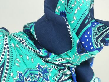 - Wzór: paisley/ornamenty – turkus, granat, biel; granatowe obszycia przy dekolcie i pachach, dekoracyjna bordiura u dołu