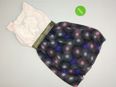 Sukienka damska bez rękawów, rozmiar XL. - Kolor: pastelowy róż z kwiatowym nadrukiem w odcieniach fioletu, błękitu, bieli i czerni - Krój: luźniejsza góra z pionowymi zaszewkami/plisami z przodu, ...