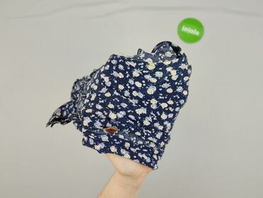 Lekka, zwiewna bluzka damska w kwiatowy wzór w odcieniach błękitu, granatu i bieli. - Materiał: cienka, półprzezroczysta tkanina typu szyfon/voile z drobną fakturą marszczenia - Krój: taliowany, z...