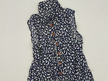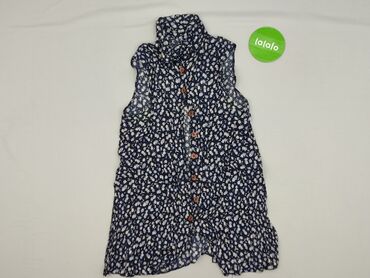 Granatowa bluzka damska bez rękawów w kwiatowy wzór - Krój: luźny, lekko wydłużony dół z zaokrąglonym wykończeniem - Dekolt: okrągły, z delikatnymi zakładkami przy ramionach - Tył: niewielkie rozc...