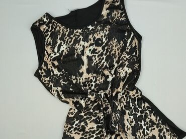 Damska bluzka/krótka sukienka bez rękawów z wstawką w zwierzęcy wzór - Kolor: czarny z kontrastowym panelem na przodzie w print wężowej skóry (od beżu po brąz) - Krój: dopasowany, panelowy; optycz...Stan: