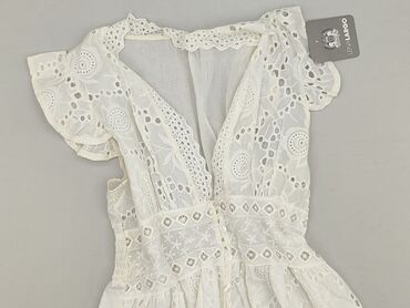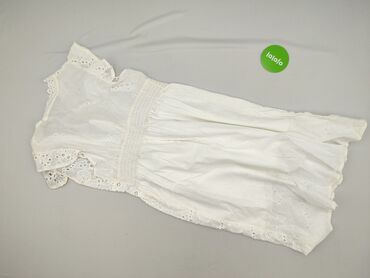 Biała sukienka damska z krótkim rękawem, idealna na specjalne okazje. Górna część sukienki, w tym rękawy, wykonana jest z koronki, nadając jej elegancki i delikatny wygląd. Dół sukienki jest gładki...Stan: