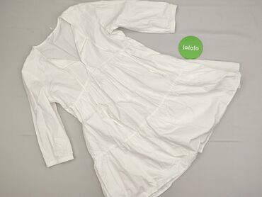 Sukienka damska marki Sinsay w kolorze białym. Charakteryzuje się rozkloszowanym fasonem mini z falbanami, który nadaje jej lekkości. Posiada krótkie rękawy i okrągły dekolt, a także regulację w ta...
